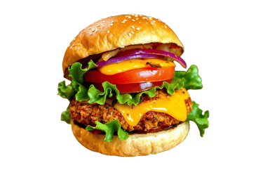 Pain brioché, steak haché, cheddar, salade, tomate, sauce au choix