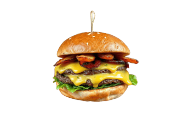 Pain brioché, deux steak hachés, deux cheddars, salade, tomate, sauce au choix